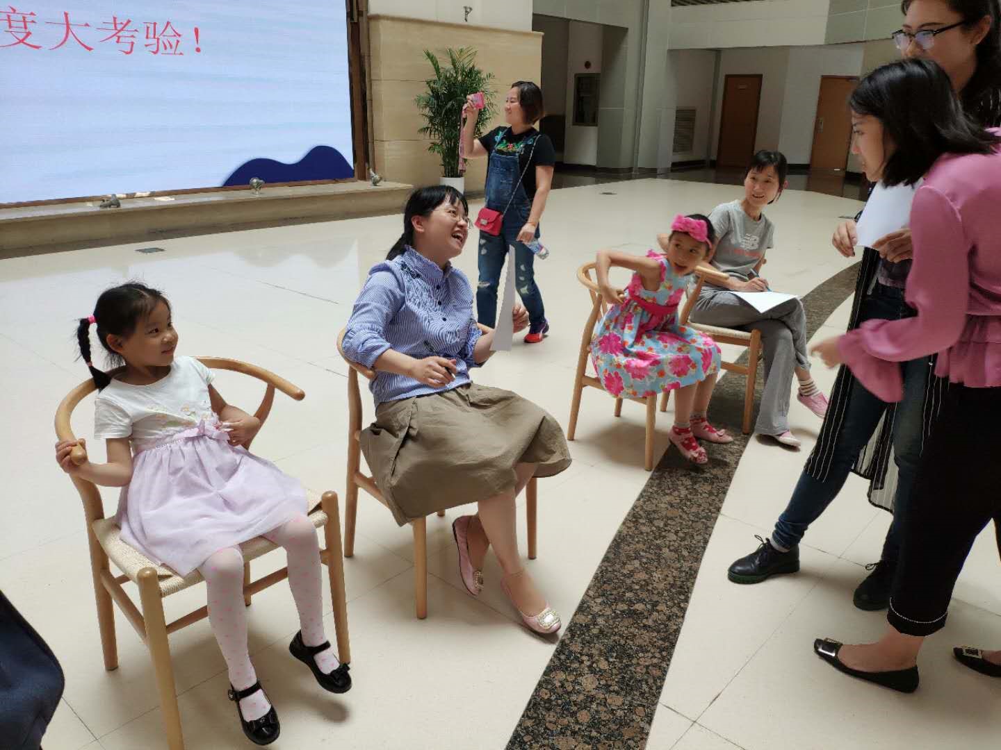 工会精心策划并准备了一系列游戏,如“默契度大考验”,主持人负责提问,家长写,孩子答,看看答案是否一致,考验孩子与爸爸妈妈的默契程度;同时还举行了孩子和爸爸妈妈一起运乒乓球的活动,让家长和孩子一起配合,一起运动。
