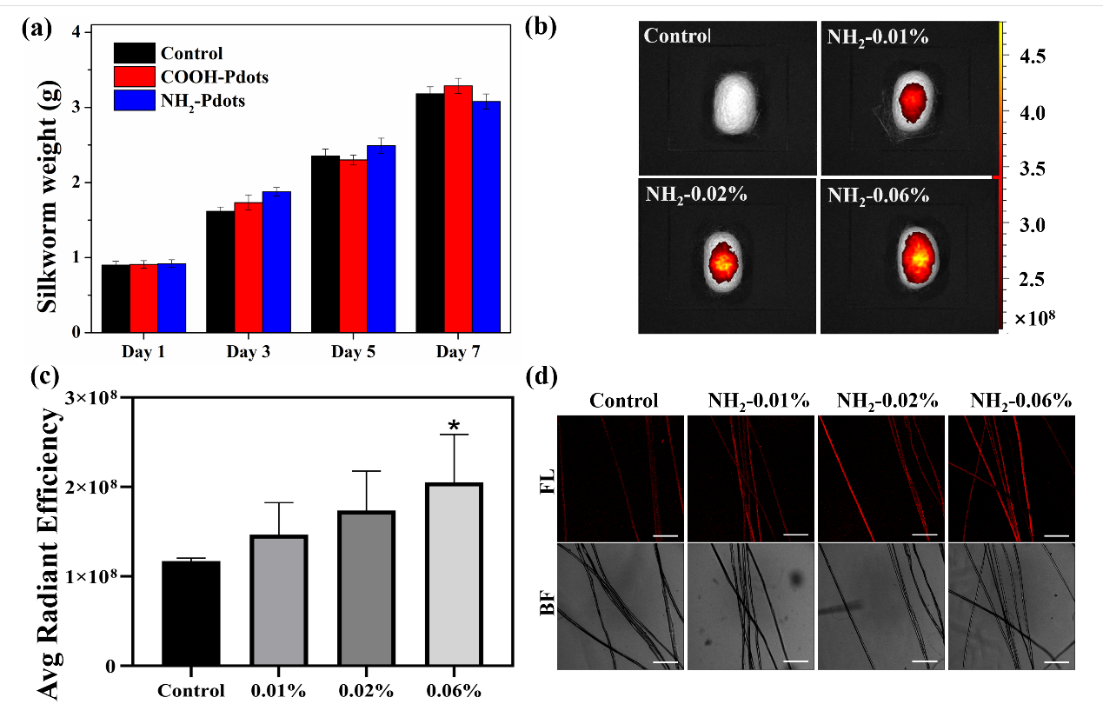 Jingru Li, Yuqiao Li, Shuting Lu, Juxiang Zhang, Chunfu Zhang, Liqin Xiong*, DualPerformance Optimized Silks from UltraLow Dose Polymer Dots Feeding and Its Absorption, Distribution and Excretion in the Silkworms. Adv. Fiber Mater., 2022. //doi.org/10.1007/s42765-022-00147-6