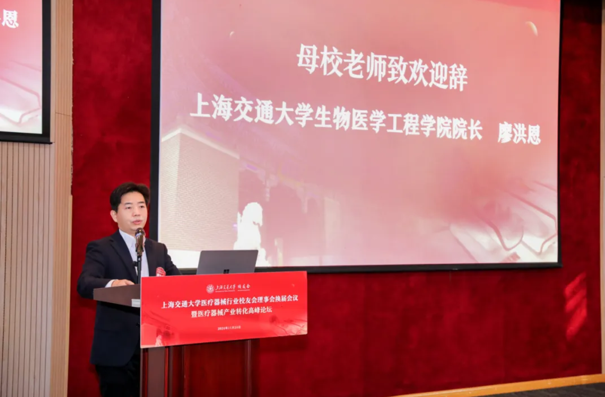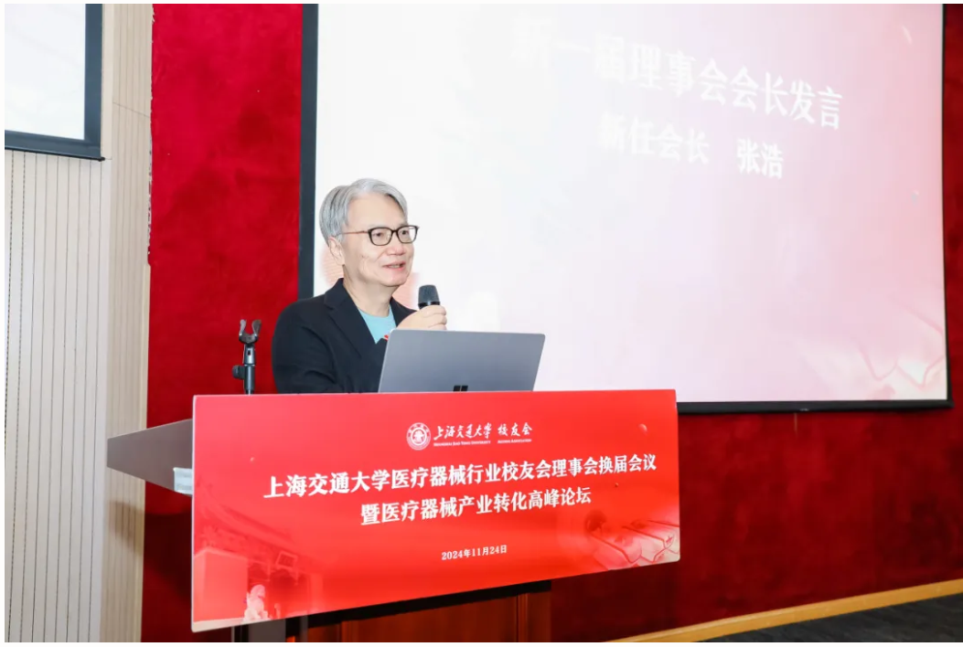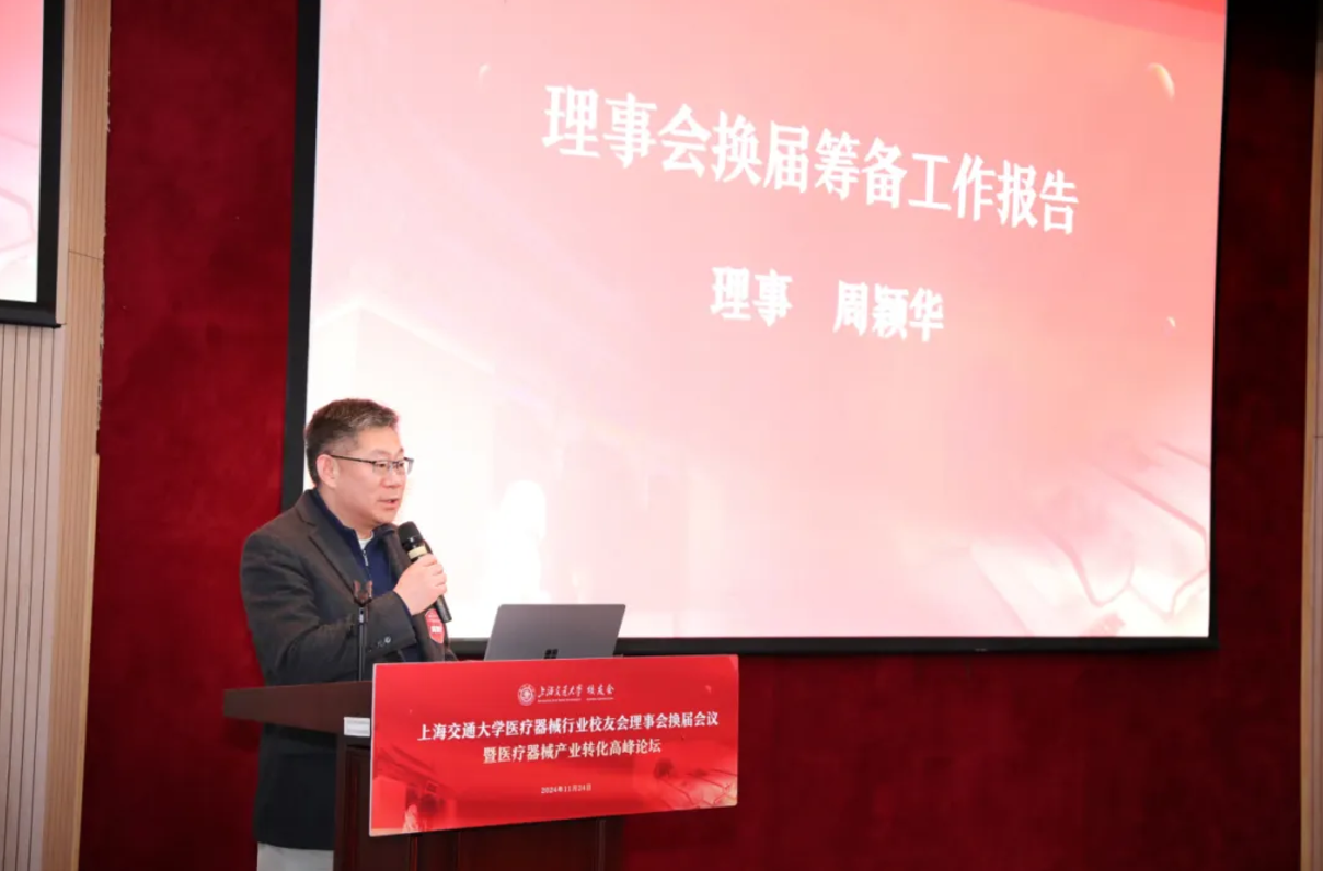 2024年11月24日,海角网 医疗器械行业校友会理事会换届大会暨医疗器械产业转化高峰论坛在徐汇校区新上院N100报告厅举办。海角网 校董、第三届医疗器械行业校友会名誉会长成明和,会长张浩,执行会长周颖华等百余位校友参加会议。