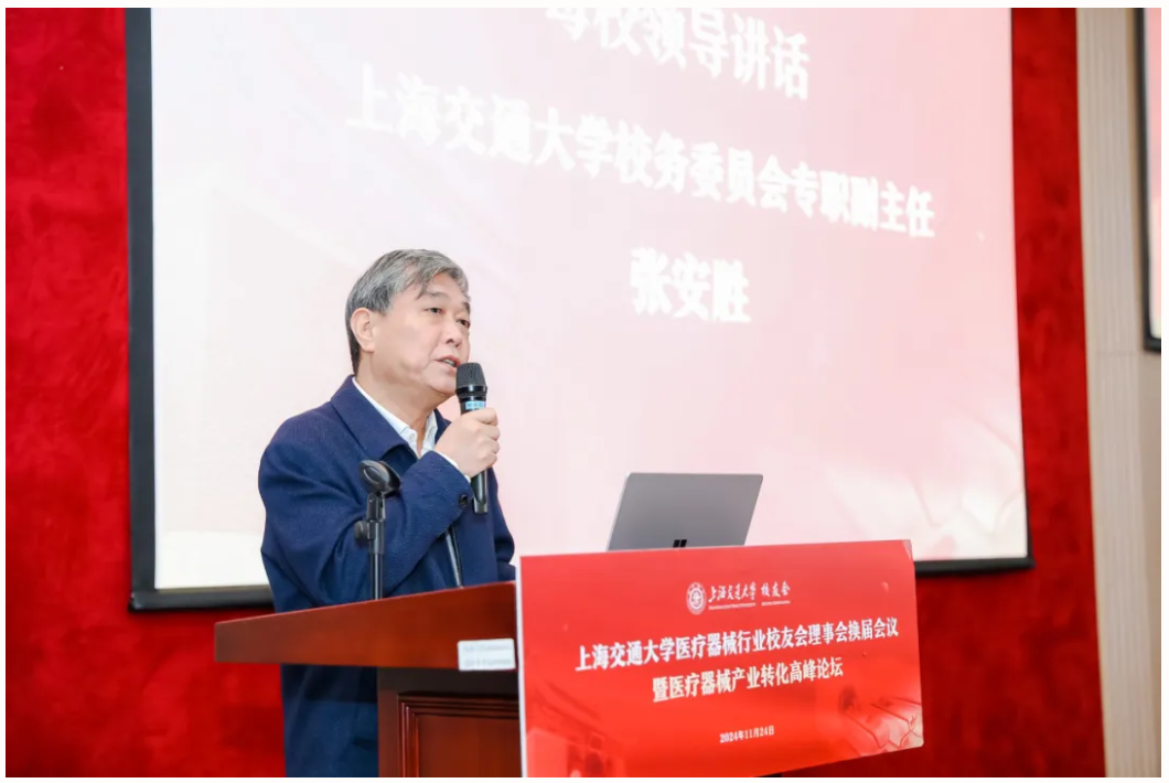 张安胜做总结讲话。他高度评价了医疗器械行业校友会在汇聚校友力量、推动行业发展方面所做出的贡献和取得的成就,祝贺医疗器械行业校友会获得优秀校友组织“特别贡献奖”,并对医疗器械行业校友会未来的发展提出殷切期望。他相信,随着校友们在医工交叉、大健康等领域的不断深耕细作,医疗器械行业校友会必将成为母校大步发展的坚实力量,为母校实现跨越式发展注入新的活力。