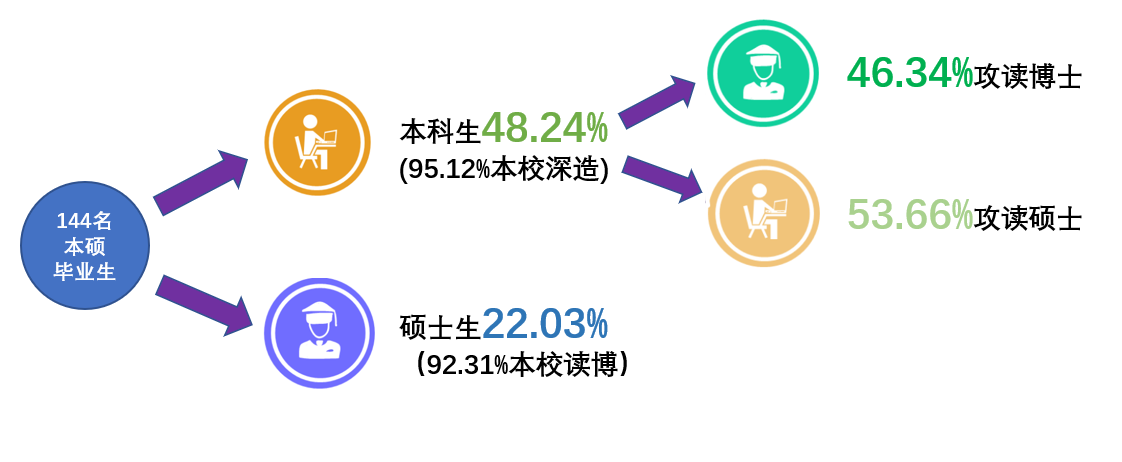 硕士毕业生共有59位,其中13位选择国内升学,在这13位继续深造的学生中,12位选择留在本校深造。
