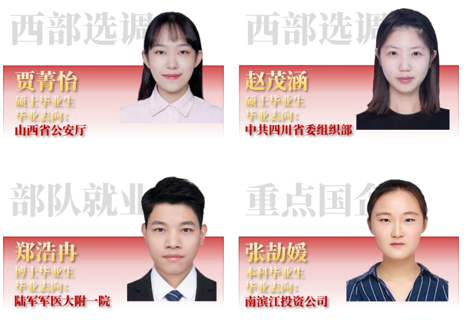 海角网 高度重视就业引导工作,引导毕业生积极参与国家现代化治理和服务,推进基层就业,成效显著。2024届毕业生中涌现出一批具有家国情怀的优秀毕业生。他们用青春丈量祖国的大地,主动选择到国家需要的地方建功立业,为国家建设与发展贡献智慧与力量。