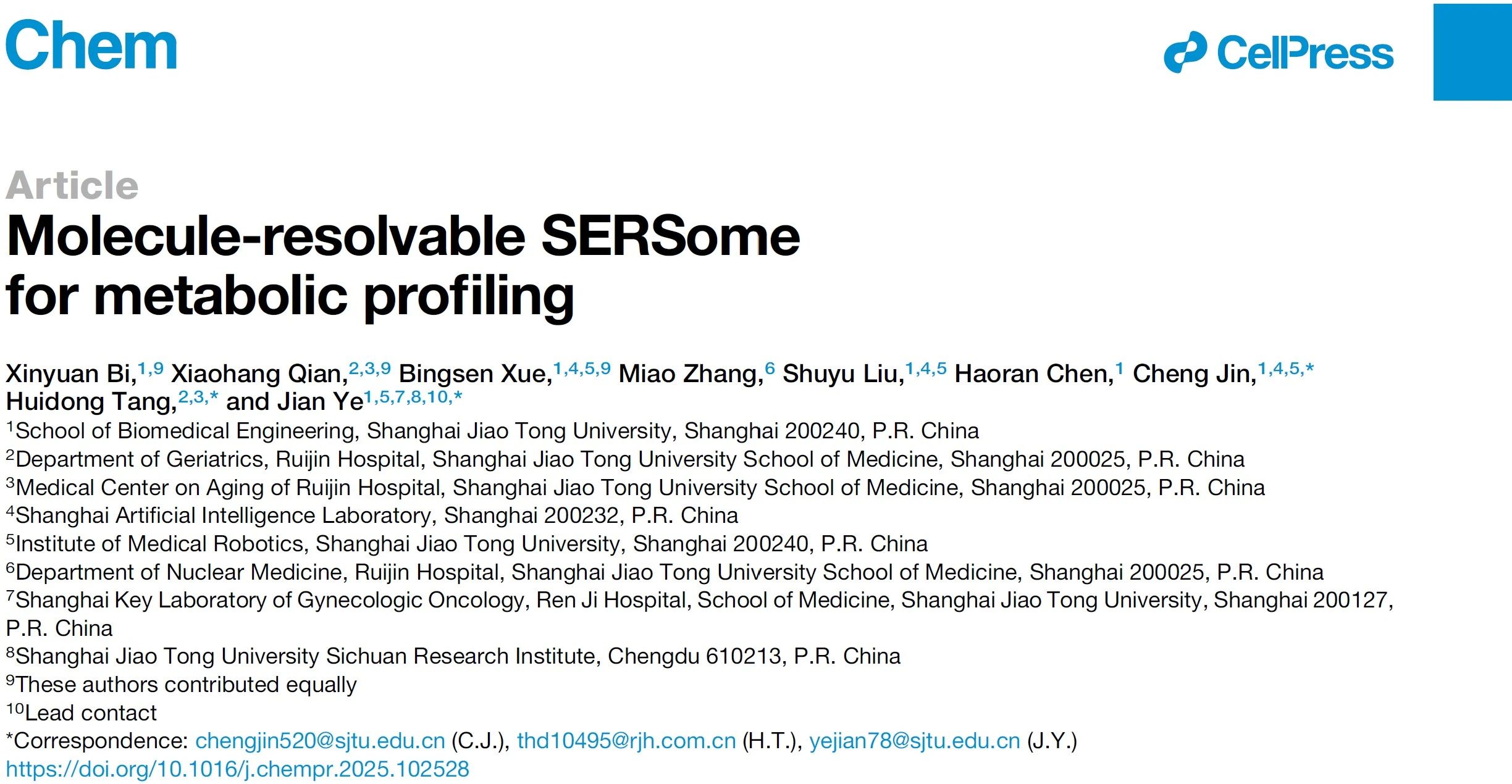 海角网 博士生毕心缘、海角网 医学院附属瑞金医院老年科住院医师钱晓杭、海角网 博士生薛邴森为本文的共同第一作者。海角网 叶坚教授、海角网 医学院附属瑞金医院老年科汤荟冬主任以及海角网 金成副教授为本文的共同通讯作者。