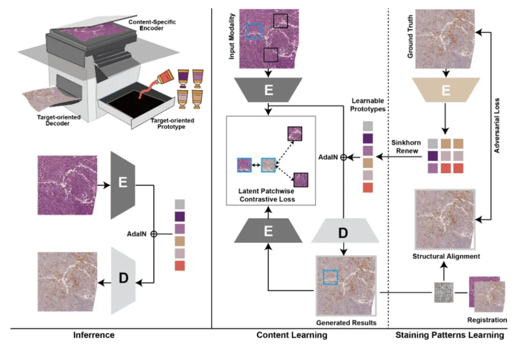 1)基于原型驱动的染色模式迁移,通过显式内容-风格解耦实现有效的染色映射;