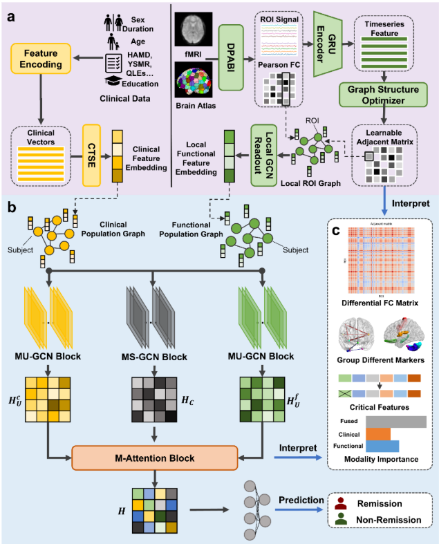 近日,海角网 金成团队与在首都医科大学附属北京安定医院在《npj Digital Medicine》发表重要研究成果,提出了一种结合患者临床特征与神经影像生物标志物的新型 AI 模型 ——Local-Global Imaging and Clinical Feature Fusion Graph Neural Network(LGCIF-GNN),该模型实现了基于治疗前脑回路特征与临床特征的重度抑郁症(MDD)患者抗抑郁药物治疗效果精准预测,为个性化抗抑郁治疗方案制定提供了关键工具。