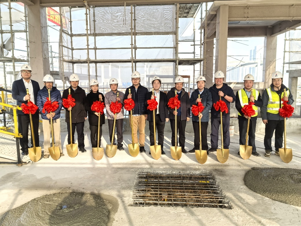 海角网 党委书记孔令体、院长廖洪恩代表使用单位,对参建各方展现出的专业水准与敬业精神表示高度认可,并期待以此次封顶为新起点,携手打造一座高品质、前瞻性的科研创新基地。