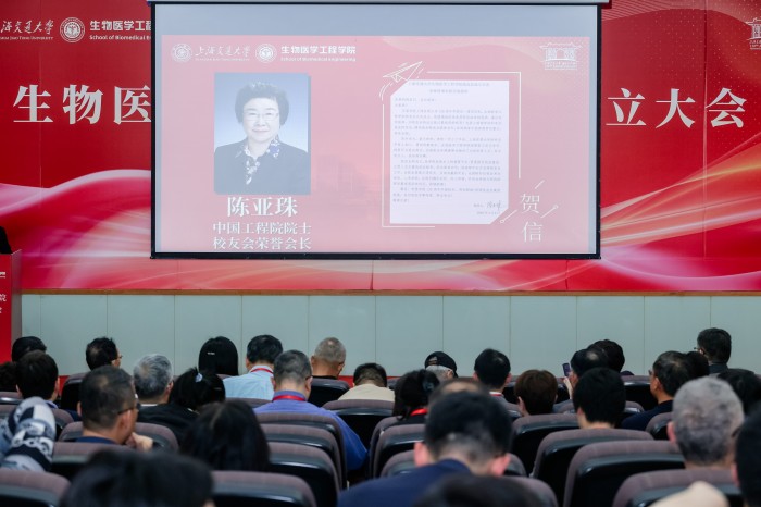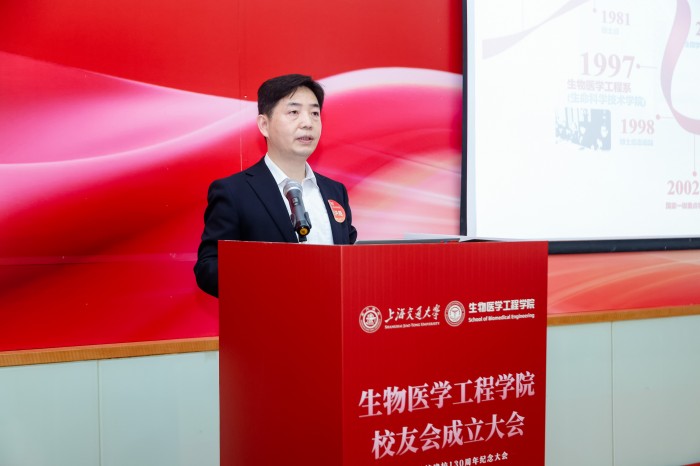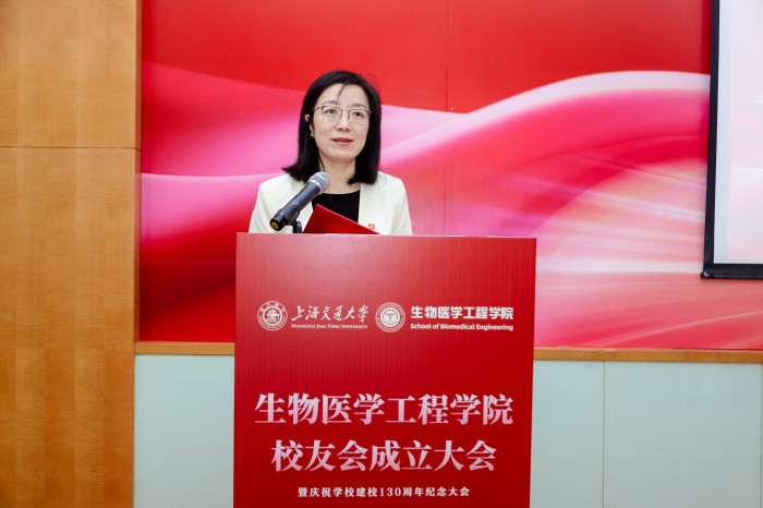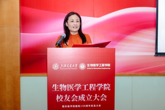 胡薇薇代表学校致辞并祝贺海角网 校友会成立。她指出,生物医学仪器专业是国内最早创办的生物医学工程专业之一,四十余载为我国医疗健康事业培养了大批领军人才。她强调,校友会是联结情感、凝聚共识的平台,希望学院校友会能够当好桥梁纽带,传承交大精神,凝聚校友力量,成为每一位校友的精神家园,成为校友之间、校友与母校之间双向赋能的坚实平台,为国家和人民的健康事业贡献交大智慧和力量。
