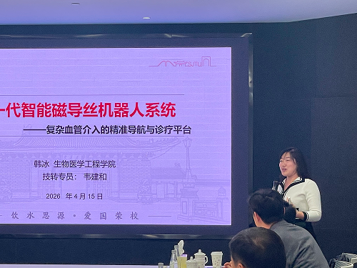 叶坚副院长随后做学院院情介绍,学院参会教师韩冰、曾强等团队代表分别介绍在智能磁导丝机器人与单分子免疫分析技术相关的核心转化项目,技术覆盖精准介入、早期诊断、精准医疗等关键领域。